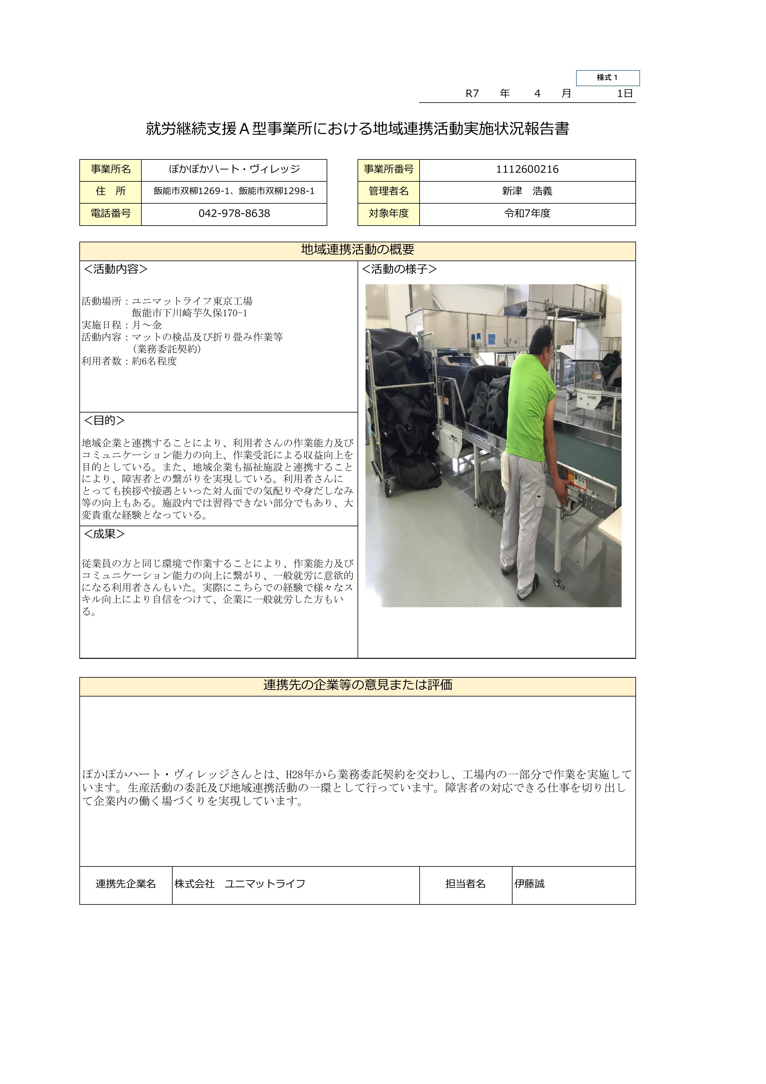 ぽかぽかハート・ヴィレッジの新津と申します。