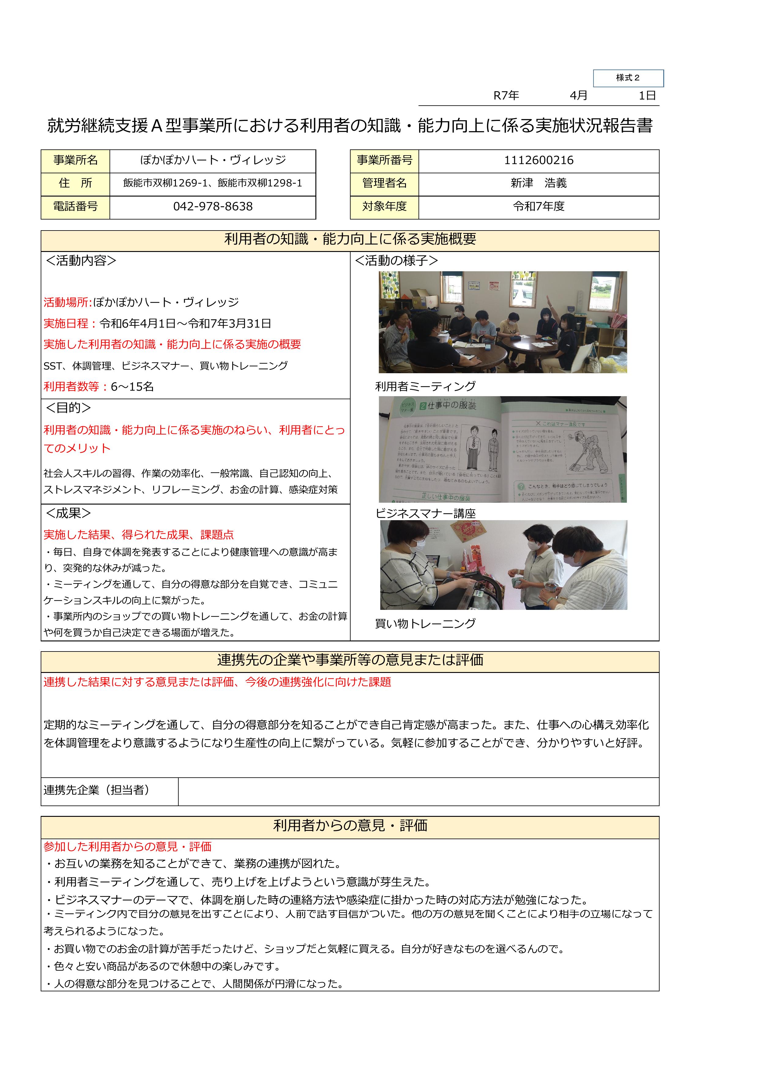 また、利用者さんの目標や課題に合わせた支援を行い、自分らしく働きながら自立へ向けた一歩を踏み出せるようサポートしています。これからも地域とのつながりを大切にしながら、一人ひとりが安心して輝ける事業所を目指してまいります。